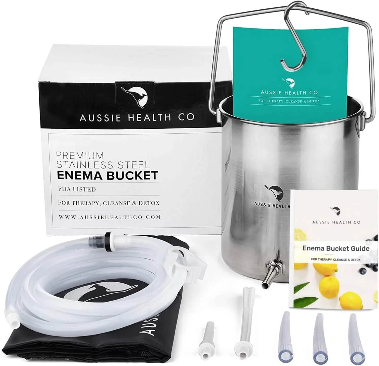 - Premium-Purity™ Non-Toxic Stainless Steel Enema Bucket Kit designed for Australian and American health standards with premium-purity(tm) #304 grade stainless steel and other materials. This colon cleansing enema bucket is made with medical grade, reusable, odorless, BPA and phthalates free stainless steel, silicone and PVC tips.