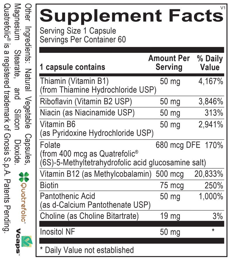 (from 400 mcg as Quatrefolic® (6S)-5-Methyltetrahydrofolic acid glucosamine salt) - Vitamin B12 (as Methylcobalamin) - 500 mcg (20,833% DV)