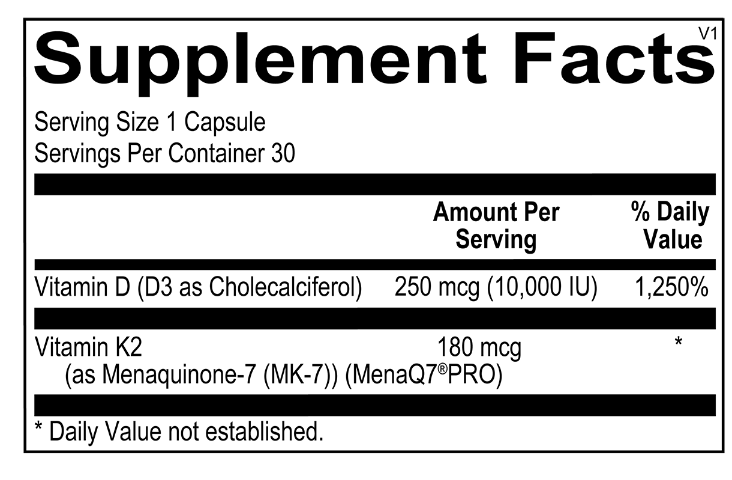- Vitamin K2 (as menaquinone-7 (MK-7)) (MenaQ7) – 180 mcg