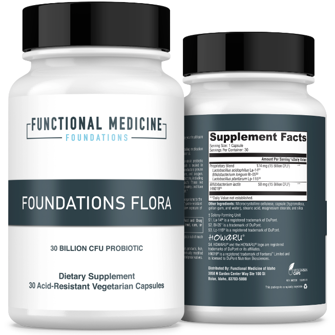 Foundations Flora is a unique probiotic formula designed to deliver active organisms shown to promote healthy gut microflora, protect intestinal integrity and boost immune function. Included in this formula is Saccharomyces boulardii, an extensively researched microorganism shown to help restore microflora balance by enhancing commensal organism function. Each Foundations Flora capsule provides seven proven probiotic strains chosen for their ability to withstand the harsh gastrointestinal environment and adhere to the intestinal tract to deliver superior results.