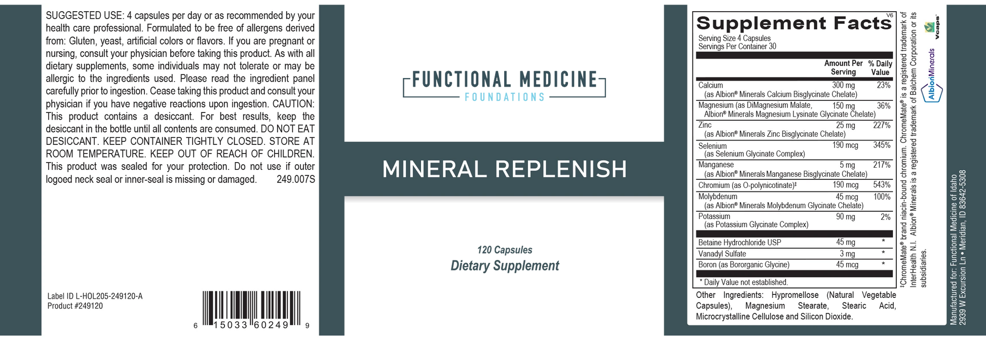 Mineral Replenish, Functional Medicine of Idaho’s highly absorbable and balanced multi-mineral formula, is composed exclusively of Albion®’s patented and fully reacted mineral amino acid chelates, malates, and mineral complexes.