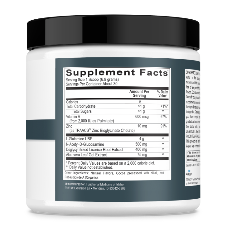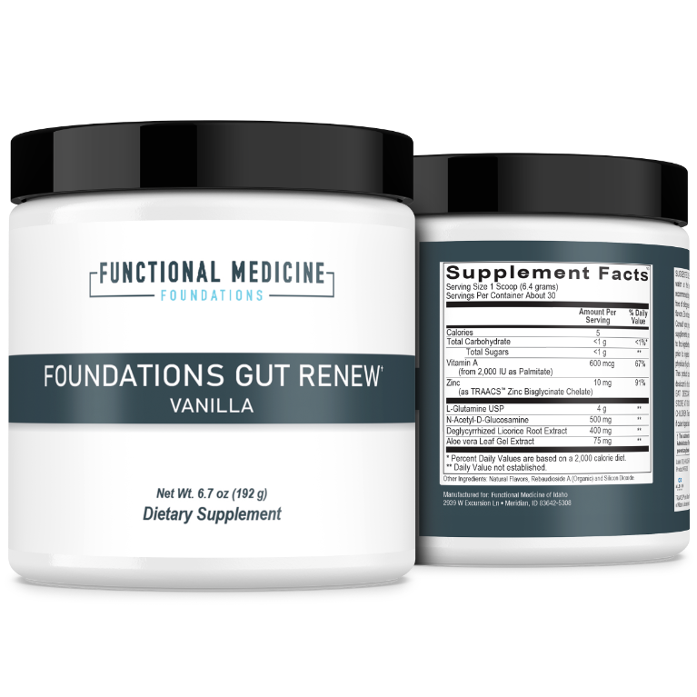 Foundations Gut Renew is designed to promote the health and barrier function of the gastrointestinal lining. This advanced formula combines key nutrients and botanical extracts that support gut integrity, immune health, and overall digestive comfort. It is gluten-free, yeast-free, and contains no artificial colors or flavors—making it ideal for sensitive individuals. Each serving includes a blend of Vitamin A, Zinc, L-Glutamine, N-Acetyl-D-Glucosamine, deglycyrrhizinated licorice root, and aloe vera to target gut health and healing at the cellular level. 30 Servings / 207 Grams